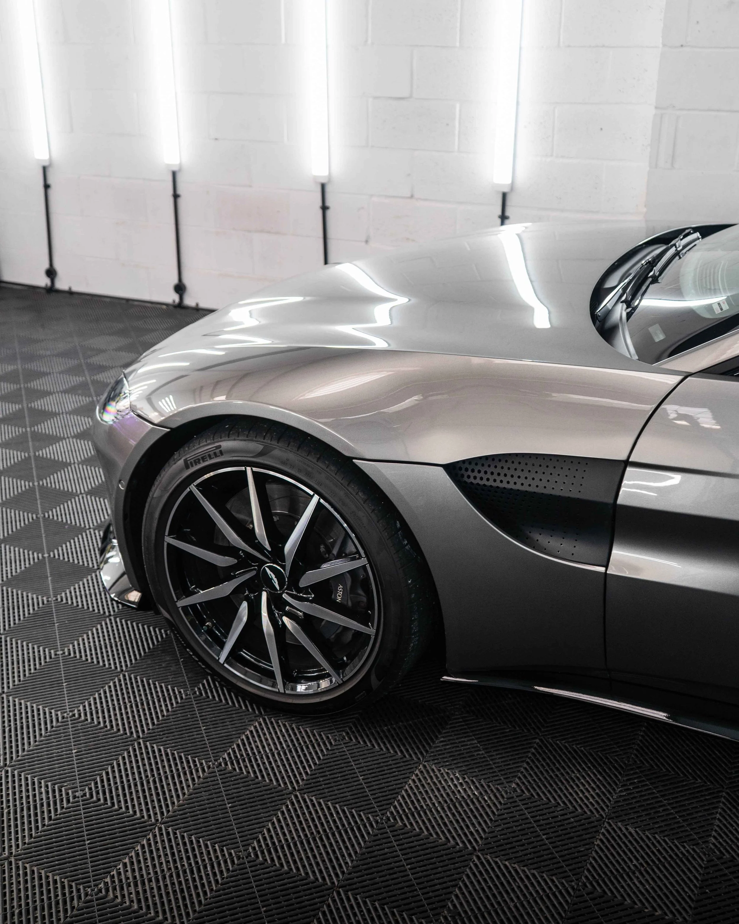 This Aston Martin Vantage received a full Stage 1 Machine Polish, which includes polishing all of the paintwork and Gloss Black trims. The team also re-applied Gloss PPF to the front bumper and splitter, after the customer had substain some damage to the film. This job was then finalised with a 1x layer protective coating of CermaicPRO.